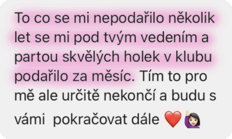 Krátkodobá řešení přináší vždy jen krátkodobé výsledky. Pokud vás nebaví stále začínat a točit se v cyklu frustrace a zklamání, klub je tu pro vás. Mým cílem je pomoct vám nastavit a udržet zdravý životní styl, který vás baví a dává smysl i dlouhodobě.